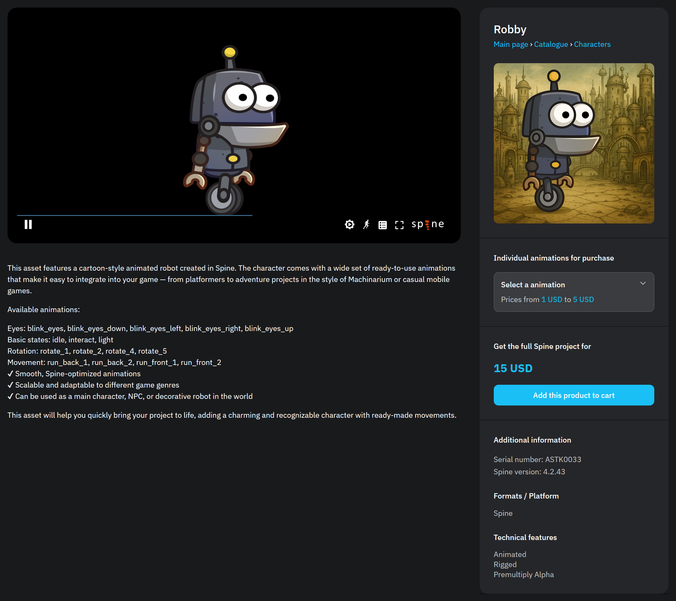 If you need the complete set, you can purchase the entire Spine project archive. This archive includes all animations of the character/object, convenient for editing and integration into your project.