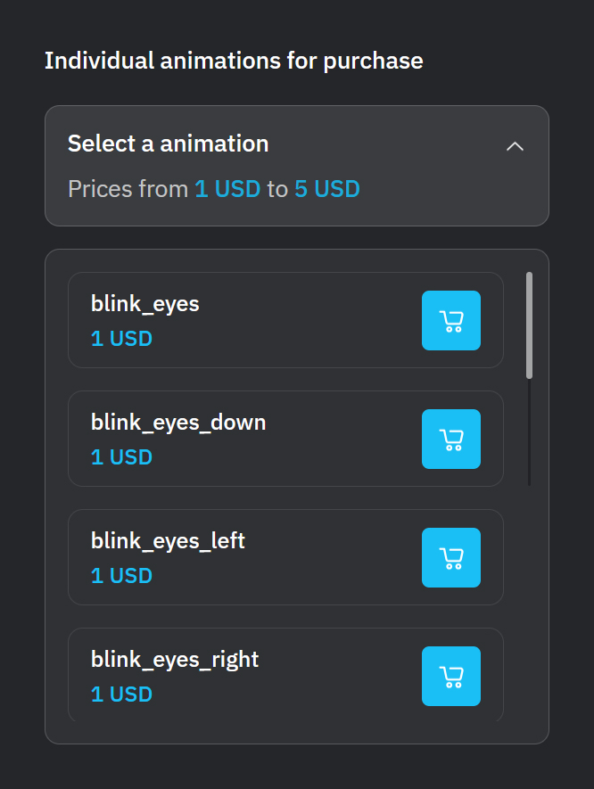 But! You can also choose individual animations and purchase them — even just one! And later, you can buy more whenever you need!