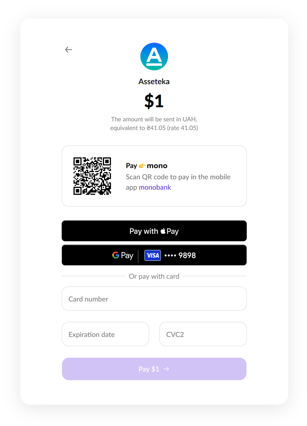 You can make a payment with your Apple Pay, GPay, or by directly entering your bank card number.